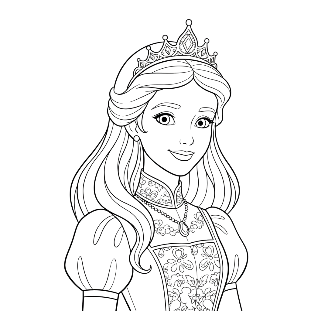 Эта раскраска — прекрасный способ раскрыть творческий потенциал. Используйте яркие фломастеры, нежные краски или сочные карандаши, чтобы вдохнуть жизнь в каждую деталь: от блеска драгоценных камней на короне до тончайших узоров на наряде. Позвольте своей фантазии разгуляться, выбирая цвета, которые наилучшим образом передадут ваше видение сказочной героини.
